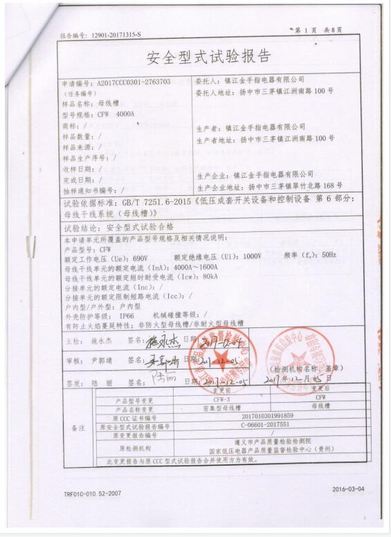 CFW 母線槽(1600A)試驗報告
